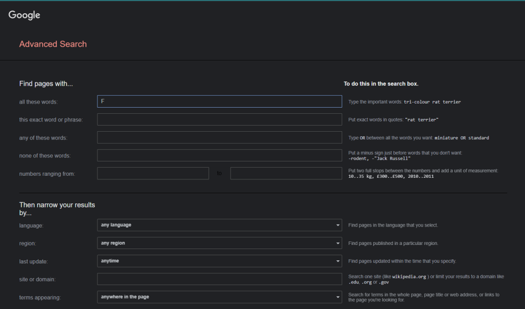 If you’re writing for a different language or country, you can use Google’s Advanced Search. There, you can choose the region and language that match your audience.